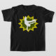 O t-shirt preto da juventude com uma ilustração legal de uma silhueta branca do dançarino da ruptura em uma explosão retro verde e amarela groovy da estrela - www.vectorportal.com - escolha o estilo, a cor e o tamanho de seu artigo do roupa.