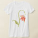 Há uma grande variedade de flores e esta é uma flor particularmente adorável que está caindo. Cria um belo olhar. Esta flor rosada está na ponta de um longo caule verde e ela caiu perto do topo, então a flor está pendurada. Este design de flor caindo parece excelente nesta camiseta feminina. Perfeito para si mesmo ou como presente