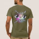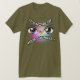 T-Shirt de Folha Curta com ilustração facial e citação engraçada "Não é da sua conta!". A imagem frontal é escalável. A imagem traseira é personalizável.