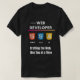 Mostre suas habilidades de desenvolvimento da web com esta camiseta preta na moda! Apresentando texto ousado "WEB DEVELOPER", logotipos HTML5, CSS3 e JavaScript icônicos e o slogan "Criando a Web, Uma Etiqueta por Vez" é perfeito para codificadores, programadores e entusiastas técnicos. Feito de tecido suave e confortável, é um presente ideal para qualquer um apaixonado por construir sites.