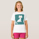 Um adorável gato branco sobre um fundo verde. Esta design parece muito eficaz nesta Camiseta de Meninas