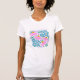 Camiseta colorida de flores azuis cor-de-rosa com seu próprio texto, citação, nome da cidade. Camiseta moderna e elegante para mulheres, amantes da moda, flores, amigos, mães, senhoras, adultos para aniversários, dias de as mães, natal, feriados. Vista esta bonito camiseta branca de cor d'água floral para um estilo único.