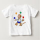 Que manipula o macaco t-shirt caracteriza um macaco que manipula bolas brilhantemente coloridas.