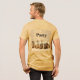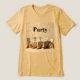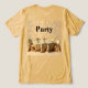 T-Shirt do Partido de Design de Festa Dourada Este é um T-Shirt de Festa. A imagem foi criada com arte gerativa. A parede tem um design de cor dourada creme. A toalha de mesa é uma pastilha elástica de cetim de ouro leve. As cadeiras são brancas e douradas. A festa é uma pequena festa privada. A festa está na camiseta em texto preto. Você pode alterar a imagem e o texto com o botão Personalizar.