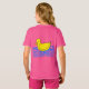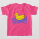 O design nesta camiseta apresenta um pato amarelo fofo.