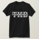 T-shirt preto com TKD - Taekwondo no branco na parte dianteira.