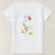 Um t-shirt das senhoras com um ganso, uma parte dianteira e uma parte traseira, expor em uma viagem com seus pertences amarrados acima em um vermelho e em um branco manchou o lenço, da pintura do watercolour por Judy Adamson. Ideal para qualquer um que ajusta fora seus viagens - por exemplo um ano da diferença. Use esta imagem no t-shirt de sua escolha para senhoras, homens ou crianças.