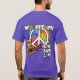 T-shirt de Woofstock para amantes do cão. O grande sinal de paz da laço-tintura, com pata imprime, cão bonito de Pomeranian que veste óculos de sol legal com uma guitarra. Paz, amor, e cães de filhote de cachorro. Vivo, latido, amor. Gráficos dianteiros e traseiros coloridos.