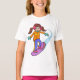 Uma garota se apressando em uma ladeira. Esta design parece muito eficaz nesta Camiseta de Meninas