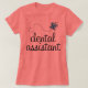 Logotipo azul de borboleta com o slogan do Dental Assistant aparece em t-shirt curta de capa das mulheres.