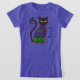 Camiseta feiticeira de gato preto. "Gire os ossos e dobre as costas. Toca-o-a-tira-a-Mel-a-ka-mys-ti-ca. Dá-lhe pele negra como negra. Apenas. Tipo. Isto."