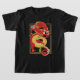 Os dragões vermelhos chineses são símbolo mítico de uma sorte e poder (os dois símbolos nesta design). São também um dos sinais do zodíaco chinês. Ilustração gráfica de design na T-Shirt de Meninos para fãs de dragões e amantes da mitologia chinesa.