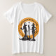 Crie um pouco para a caminhada das bruxas da sua cidade ou outro evento de arrecadação de fundos do Halloween. Criado com duas bruxas elegantes modernas com vassouras em um círculo de estilo de logotipo com texto editável. Muitos estilos de camisa e tamanhos a escolher. Preto e laranja, parece melhor em cores claras. Veja também um design branco em cores escuras.