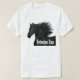 T-shirt com um retrato de um garanhão preto bonito do frisão com juba de fluxo longa, fotografado e projetado por Magdalena Strakova. Inscrição: Fã do frisão. Presente original e original para cada amante do cavalo do frisão!