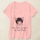 Obteve um gato heróico secreto ou mesmo um pouco gato da intimidação? então este camisetas para você. Os gráficos bonitos de uma cara de gato preto decoram este t-shirt, com leitura feita sob encomenda preta do texto, meu gato podem bater acima seu cão!