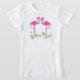 Trabalhos de arte gráficos originais de estacas cor-de-rosa da jarda do flamingo com as flores coloridas e lunáticas. T-shirt bonito das horas de verão.