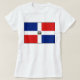 A parte dianteira deste t-shirt indica corajosamente a bandeira da República Dominicana com sua cruz branca distintiva dentro dos quadrantes azuis e vermelhos. Isto é combinado na parte traseira por um mapa atrativo da República Dominicana.