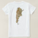 A parte dianteira deste t-shirt indica corajosamente a bandeira de Argentina com seu sol amarelo distintivo sobre bandas azuis e brancas. Isto é combinado na parte traseira por um mapa atrativo de Argentina.