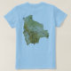 A parte dianteira deste t-shirt indica corajosamente a bandeira boliviana com suas bandas horizontais vermelhas, amarelas e verdes distintivas. Isto é combinado na parte traseira por um mapa atrativo de Bolívia.