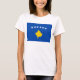 A parte dianteira deste t-shirt indica corajosamente a bandeira kosovar com seu mapa amarelo distintivo e as estrelas brancas em um fundo azul. Isto é combinado na parte traseira por um mapa atrativo de Kosovo.