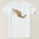 A parte dianteira deste t-shirt indica corajosamente a bandeira mexicana com seu motivo distintivo da águia e da serpente em uma banda branca com uma banda verde à banda esquerda e vermelha à direita. Isto é combinado na parte traseira por um mapa atrativo de México.