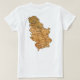 A parte dianteira deste t-shirt indica corajosamente a bandeira sérvio com sua brasão distintiva sobre bandas vermelhas, azuis e brancas. Isto é combinado na parte traseira por um mapa atrativo de Serbia.