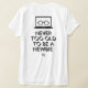 Frase de Motivação nos lados frontal e traseiro da Camisa-T. Citação: "Nunca Velho Demais Para Ser Novato". A imagem traseira é personalizável.