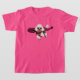 Um poodle branco voador está vestindo óculos de sol e uma capa de marrom.