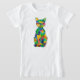 Uma pintura de um gato do arco-íris. O gato é modelado como uma concha de tartaruga, somente muito mais em cores. Apropriado para cores claras da roupa somente.