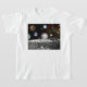Nossa design de camiseta cósmica mostra uma montagem de imagens do sistema solar tiradas pela espaçonave Voyager dos planetas e quatro das luas de Júpiter, contra uma nebulosa Rosette de cor falsa com a lua da Terra em primeiro plano. A camiseta seria o presente perfeito para sopros espaciais e fãs da exploração espacial. A fotografia do espaço de tirar o fôlego é cortesia da NASA.
