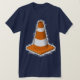 Um cone alaranjado brilhante da segurança de tráfego no branco splatted a pintura. O branco splatted mostras da pintura somente no roupa escuro.