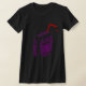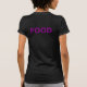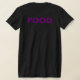 É uma camisa com um suco-box na parte dianteira e na palavra "COMIDA" na parte traseira.