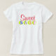 Querida. Sweet está escrito em tipografia vermelha. Letras de bebê escritas em círculos geométricos dentro verde, azul, roxo, laranja e rosa. Design original de TamiraZDescartazes.