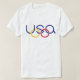 T-shirt branco dos EUA com o gráfico vermelho, do azul & do ouro.
