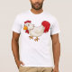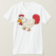 Este design é uma galinha dos desenhos animados. A galinha é branca com cauda vermelha e está lado ereto ligada. A galinha de Thie está em um estilo dos desenhos animados. Este design da galinha dos desenhos animados olha grande neste t-shirt dos homens
