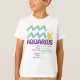 O t-shirt personalizado dos miúdos dos traços do Aquário faz um presente de aniversário perfeito para todo o Aquário. O Aquário é o décimo primeiro sinal do zodíaco e inclui todo o nascer dos indivíduos desde o 20 de janeiro - 18 de fevereiro. O símbolo do Aquário é o portador da água. Os traços da personalidade do Aquário são amigáveis, honestos, inventivos, independentes e imprevisíveis. O Aquário Birthstone é Amethyst e o planeta do Ruling do Aquário é Uranus