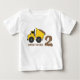 Camisa de aniversário com ilustração de um caminhão de lixo amarelo cheio de sujeira. Personalize o nome e o número.