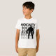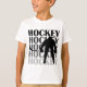 Um jogador e um texto pretos de hóquei da silhueta que leia o "hóquei" em t-shirt do hóquei, sacolas, cartões, etiquetas, canecas, e outros roupa e presentes do hóquei, perfeitos para jogadores de hóquei ou fãs de hóquei!