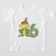 Se você ama sapos que você amará nossos t-shirt do aniversário do sapo do partido 6os, bodysuits, sacolas, o aniversário abotoa-se, e mais o 6o aniversário especial! Caracteriza um sapo verde que veste polca cor-de-rosa um chapéu pontilhado do partido e um número listrado verde grande 6!