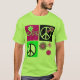 Nossos t-shirt quentes do design da paz das cores, as sacolas, os mousepads, os botões, os ímãs, e outros artigos caracterizam o verde limão quente, o preto, e as flores do rosa quente e os símbolos de paz e uma mensagem para promover a paz de mundo!