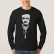 O retrato simples de Edgar Allan Poe com parte inferior, preto & branco do gotejamento em t-shirt escuros, sua e os presentes, amarelo/azul em vestuários claros.