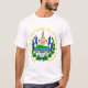 Casaco de armas de El Salvador. A casaco de armas de El Salvador tem vindo a ser utilizada na sua forma atual desde 15 de setembro de 1912. Seu centro consiste em um triângulo, em que cinco vulcões saem do mar. Eles simbolizam os cinco estados-membros das províncias da América Central. Acima dos vulcões está um boné vermelho de Phrygian sobre um funcionarios antes do sol do ouro e a data 15 de setembro de 1821, Dia da Independência de El Salvador. Sobre ele está um arco-íris que significa paz. Por trás da casaco de armas há cinco bandeiras que representam as bandeiras da República Federal da América Central levantadas. Sob ele, há um pergaminho que diz o lema nacional de El Salvador: Dios, Unión, Libertad (Espanha, "Deus, União, Liberdade"). Tudo isso é cercado por uma garland de louros, que está amarrada sob a bandeira nacional. A garland está dividida em 14 partes diferentes, que simbolizam os 14 departamentos, as unidades administrativas subnacionais salvadorenhas. Tudo isto está rodeado de ouros, que formam a ESpanhola, a REPÚBLICA DE EL SALVADOR EN LA AMÉRICA CENTRAL (Inglês: República de El Salvador na América Central).