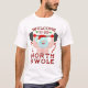 Não encontrará o Pai Natal a mexer com os biscoitos. Este ano, ele está levantando pesos em vez de óculos de leite. Esta camiseta (ou camiseta) divertida mostra um Papai noel sem camisa, soprando uma campainha em suas mãos luvas. Ele está rodeado de conchas e doces, e o texto diz: "Bem-vindo ao Swole Norte." Ninguém vai mexer com Papais noeis de novo.