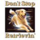 Uma camiseta engraçada do recuperador de ouros com letras parodias "Não Pare de Recuperar". O design mostra um cachorro entusiasmado demais correndo à velocidade da luz para buscar um brinquedo, uma bola ou um osso. Isso daria um presente de excelente para um amante de cachorro.