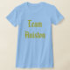 a camisa azul bonito com aniston da equipe na parte dianteira e para baixo com os lábios do pato na parte traseira VAI ANISTON!