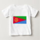 Bandeira da Eritreia. A atual bandeira do Estado da Eritreia foi adotada no dia 5 de dezembro de 1995 e utiliza a bandeira da Frente de Libertação da Pessoas da Eritreia, com a coroa com símbolo de ramificação de oliveira ereta, derivado da bandeira de 1952. A bandeira é dominada por um triângulo vermelho que se estende do guincho à mosca, com triângulos verdes e azuis complementares acima e abaixo. Verde significa a fertilidade do país, respectivamente, para a agricultura; azul significa mar (mar vermelho); e vermelho para o sangue perdido na luta pela liberdade. No triângulo vermelho, um símbolo amarelo de coroa, com 14 folhas em cada lado, derivadas da bandeira de 1952, substitui a estrela amarela da bandeira EPLF.