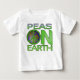 O texto diz "Ervilhas na Terra" com ervilhas em forma de símbolo de paz no topo da Terra, usadas como "o".