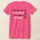 A parte dianteira lê a esposa do campo petrolífero, a parte traseira lê-o vive sua vida nas semanas onde eu vivo meus nos engates e tenho uma torre de óleo branco para a esposa do campo petrolífero e do homem a pouca distância do mar em uma camisa do rosa quente com escrita preto e branco para a senhora do homem s