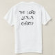 Todo o estilo da camisa ou da jaqueta com ESTÁ VINDO! na parte dianteira e NO SENHOR JESUS CRISTO, JESUS, JESUS CRISTO ou SENHOR na parte traseira.