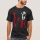 Para amantes de gatos. A palavra "AMOR" está em vermelho e empilhada com o "O" substituído por um gato. Há também uma versão para camisetas de cor clara.
